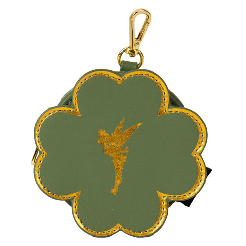 An all-over print features Tinker Bell playing amid four-leaf clovers, and a four-leaf clover removable coin purse tops off the look.